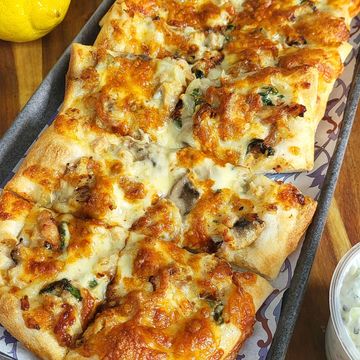 Marinated chicken, spinach, onion, mushrooms, cheese