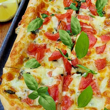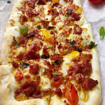 Ground lamb mince, capsicum, tomato, garlic, parsley on a thin crusty base